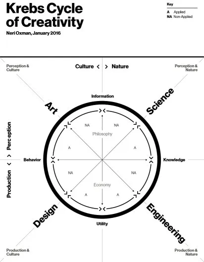 Ako pitamo “one druge” šta misle o svemu, ne pronalazim da se slažu s Knuthom. Šta više, izvesna Neri Oxman se bavila relacijama i vezama između domena o kojima pričamo, na način koji nikada doseći neću. U svom radu “Age of Entanglement” izvrsno mapira domene i njihove odnose:
